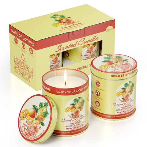 Paquete de 2 latas con sabor a mezcla de frutas para velas, caja de regalo, contenedores de estaño, latas, tarro perfumado de cera para exteriores e interiores